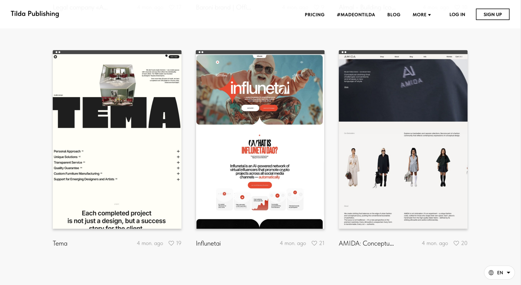 Проект AMIDA получил признание на зарубежной версии Made on Tilda, что подтвердило высокий уровень дизайна и нестандартный подход к разработке fashion e-commerce.