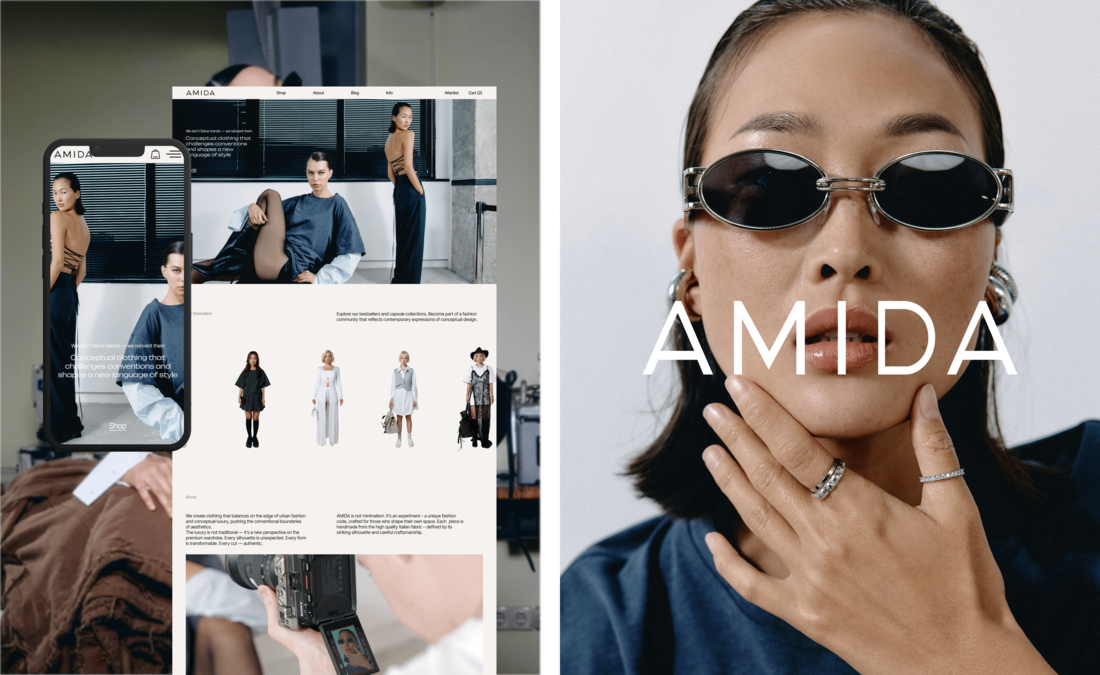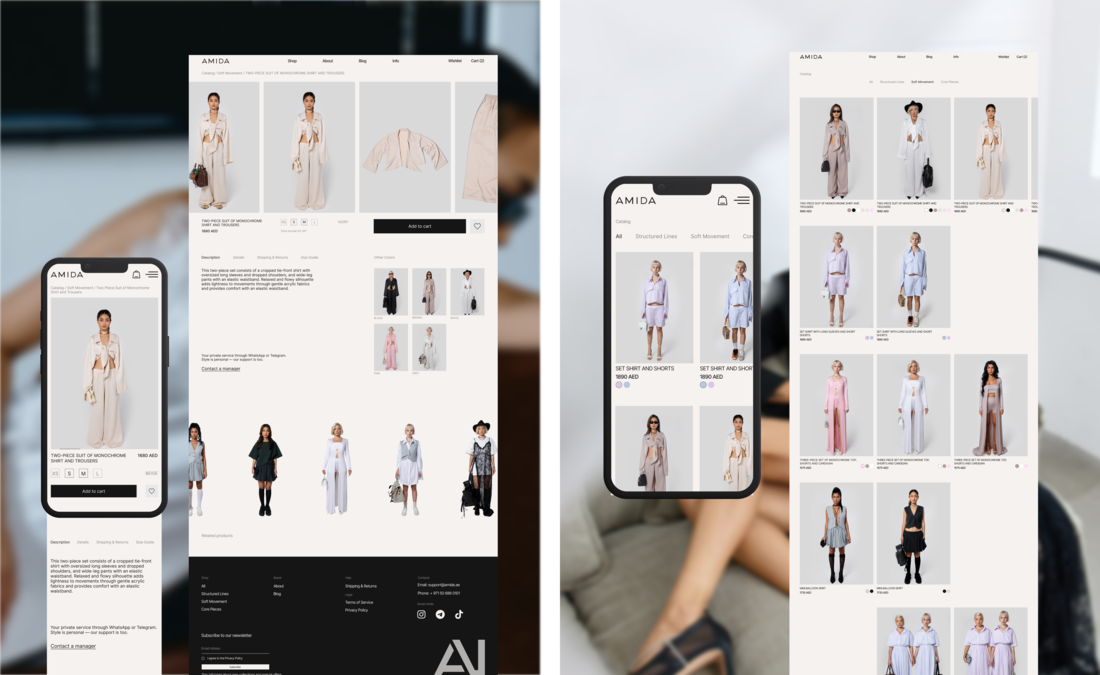 AMIDA — пример того, каким может быть премиальный e-commerce для бренда одежды, если дизайн, технологии и стратегия объединены в единую систему.